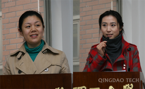 会上,365完美2009年创业能力大赛一等奖获奖团队代表、艺术学院艺术设计专业06级学生滕紫晴、青岛巾帼创业园的肖莹分别介绍了自己的创业经验,她们的精彩演讲获得了与会大学生的阵阵掌声。