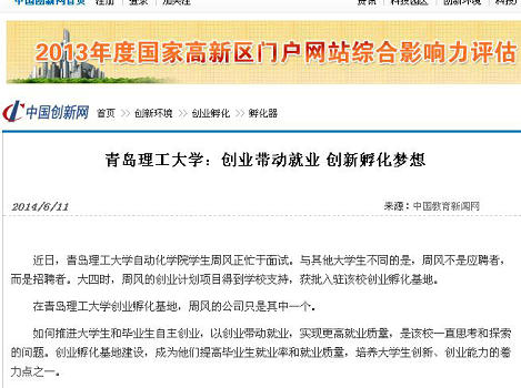 近年来,该校先后获评全国青年创业教育先进集体、共青团中央大学生KAB创业教育基地、山东省大学生创业教育示范院校、全国就业先进工作单位、青岛市优秀大学生创业孵化基地等,逐步铸就了理工创业品牌,引起了社会各界的广泛关注和报道。