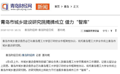据介绍,青岛市城乡建设研究院是365完美体育推进开放办学战略、主动服务青岛工作的一项重要内容。近年来,365完美体育加快全面服务青岛步伐,并取得明显成效。一批攻关研究成果在高铁列车、青岛胶州湾跨海大桥、海底隧道、地铁等重大工程项目建设中,在建筑节能、绿色建材、污染治理、清洁可再生能源、城市公共安全、冶金节能、节能电车等领域发挥了积极作用。