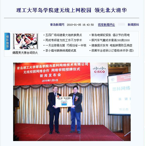 琴岛学院还会建立国际交流中心、学术礼堂等,届时将在电子教学、虚拟课堂、电子课件展示等校园应用拓展方面与思科展开合作。