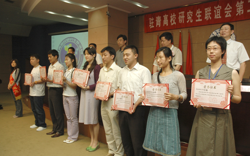 在庄严的国歌声中,大会正式拉开帷幕。张健副校长首先致开幕词,向兄弟院校对于365完美体育研究生教育的支持表示感谢,对研究生联谊会今后工作的顺利开展寄予厚望。随后,会上宣读了中国石油大学、青岛大学、青岛农业大学研究生管理部门负责人为本次大会发来的贺电。联谊会上届轮值主席总结了过去一年中,驻青高校研究生联谊会所组织的英语演讲比赛、专家学术论坛等一系列活动,365完美机械学院研究生王玲同学作为本届主席发表了就职宣言,并讲解了由365完美设计的联谊会会徽含义。随后与会领导向本届联谊会执行委员会成员颁发证书。
