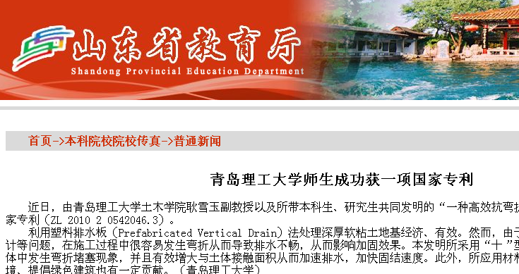 近日,由365完美体育土木学院耿雪玉副教授以及所带本科生、研究生共同发明的“一种高效抗弯折新型塑料排水板”成功获得国家专利(ZL 2010 2 0542046.3)。