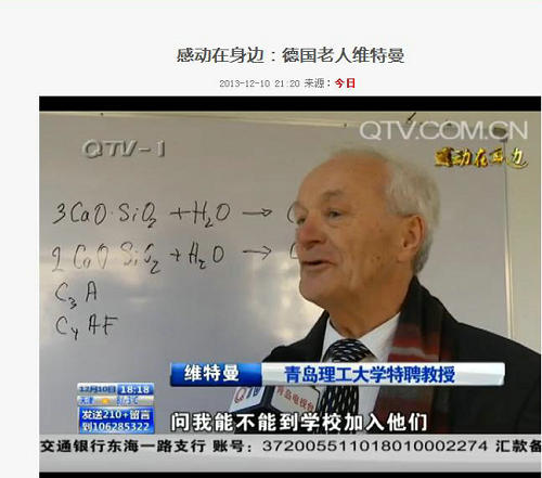 77岁的维特曼是一位德国人,他曾先后在德国慕尼黑技术大学、荷兰代尔伏特理工大学、洛桑联邦理工学院担任过教授,1991年,他成为俄罗斯国家工程院的外籍院士。2002年,这位世界混凝土领域的专家来到青岛任教。究竟是什么样的情缘,让维特曼选择了青岛?在青岛的十一年间,他跟学生、跟这座城市又产生了怎样割舍不断的深厚感情呢?