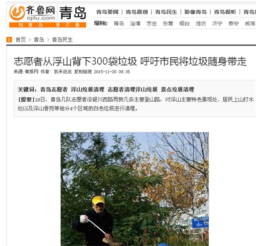 浮山新区街道相关负责人介绍,此次志愿活动共计清理出300余编织袋垃圾,他呼吁市民在登山时进一步增强环保意识,将产生的垃圾随身带走,保护青岛的绿肺。