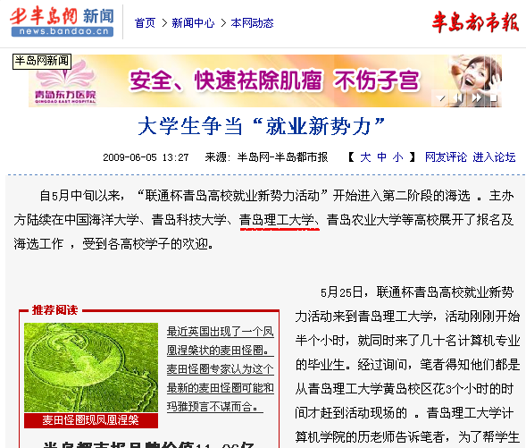 自5月中旬以来,“联通杯青岛高校就业新势力活动”开始进入第二阶段的海选 。主办方陆续在中国海洋大学、青岛科技大学、365完美体育、青岛农业大学等高校展开了报名及海选工作 ,受到各高校学子的欢迎。