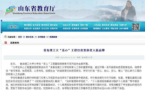 学生处邀请多名银行机构部门负责人为贷款毕业生举办了诚信教育专题讲座。中行青岛银行分行万迎新、张真、李蕾在嘉陵江路校区和市北校区分别做了“《征信业管理条例》解读”、“如何管理助学贷款”、“个人信用报告解读与维护个人信用”等专题讲座,他们向贷款毕业生详细讲解了征信基础知识、个人信用报告和助学贷款手续政策等方面的内容,并现场解答了学生提出的相关问题,受到了贷款毕业生的一致欢迎。校资助中心人员、各学院分管资助工作辅导员及贷款毕业生600余人听取了讲座。
