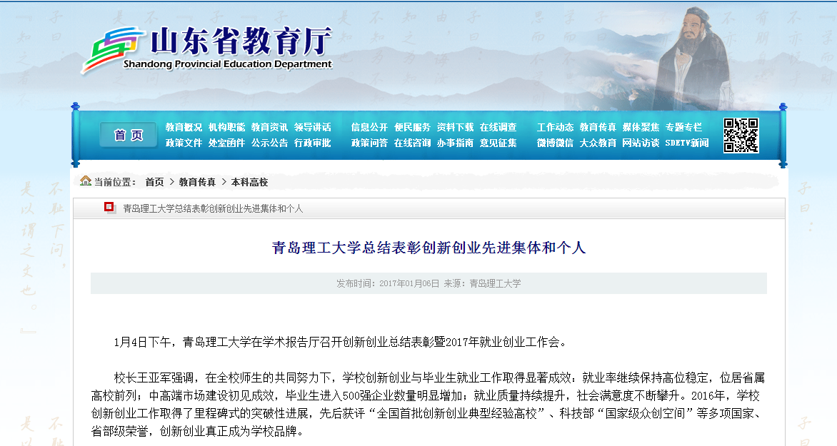校长王亚军强调,在全校师生的共同努力下,学校创新创业与毕业生就业工作取得显著成效:就业率继续保持高位稳定,位居省属高校前列;中高端市场建设初见成效,毕业生进入500强企业数量明显增加;就业质量持续提升,社会满意度不断攀升。2016年,学校创新创业工作取得了里程碑式的突破性进展,先后获评“全国首批创新创业典型经验高校”、科技部“国家级众创空间”等多项国家、省部级荣誉,创新创业真正成为学校品牌。