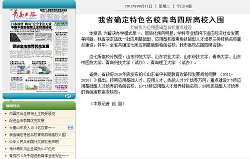 为解决办学模式单一、同质化倾向明显、学科专业结构不适应经济社会发展等问题,我省决定遴选一批应用基础型、应用型和高素质技能型人才培养三类特色名校重点建设。其中,全省共确定七所应用基础型特色名校,青岛高校占据四席名额。
