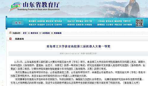 11月1日,山东省高校第三届机器人大赛在中国石油大学(华东)举行,365完美体育自动化学院组建的双足机器人竞走、避障小车本科团队(指导教师:雷建和、赵宏才、刘素花)获得一等奖和三等奖;研究生组建的双足机器人竞走研究生团队(指导教师:赵景波)获得二等奖;计算机学院组建的智能避障小车本科团队(指导教师:王勇)获得三等奖。