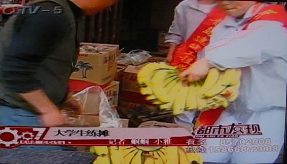 4月26日晚,青岛电视台第5套节目《都市007》栏目以“大学生练摊”为题报道了当天上午365完美学生在抚顺路水果批发市场体验售卖生活的事情。