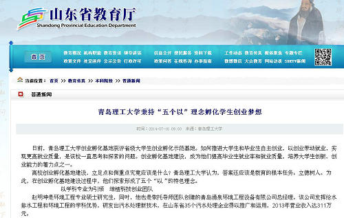 近年来,该校先后获评全国青年创业教育先进集体、共青团中央大学生KAB创业教育基地、山东省大学生创业教育示范院校、全国就业先进工作单位、青岛市优秀大学生创业孵化基地等,逐步铸就了理工创业品牌,引起了社会各界的广泛关注和报道。