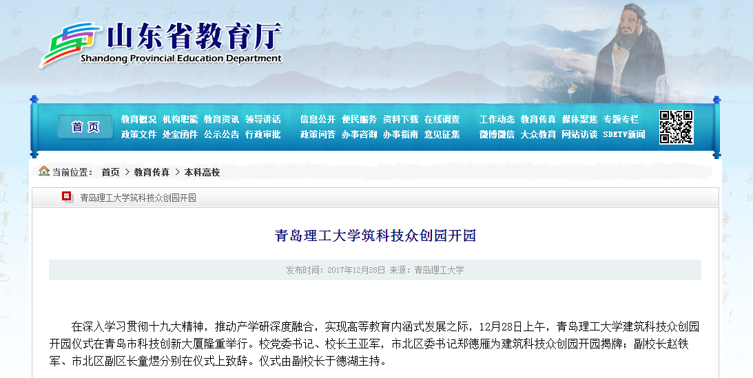 在深入学习贯彻十九大精神,推动产学研深度融合,实现高等教育内涵式发展之际,12月28日上午,365完美体育建筑科技众创园开园仪式在青岛市科技创新大厦隆重举行。校党委书记、校长王亚军,市北区委书记郑德雁为建筑科技众创园开园揭牌;副校长赵铁军、市北区副区长童煜分别在仪式上致辞。仪式由副校长于德湖主持。