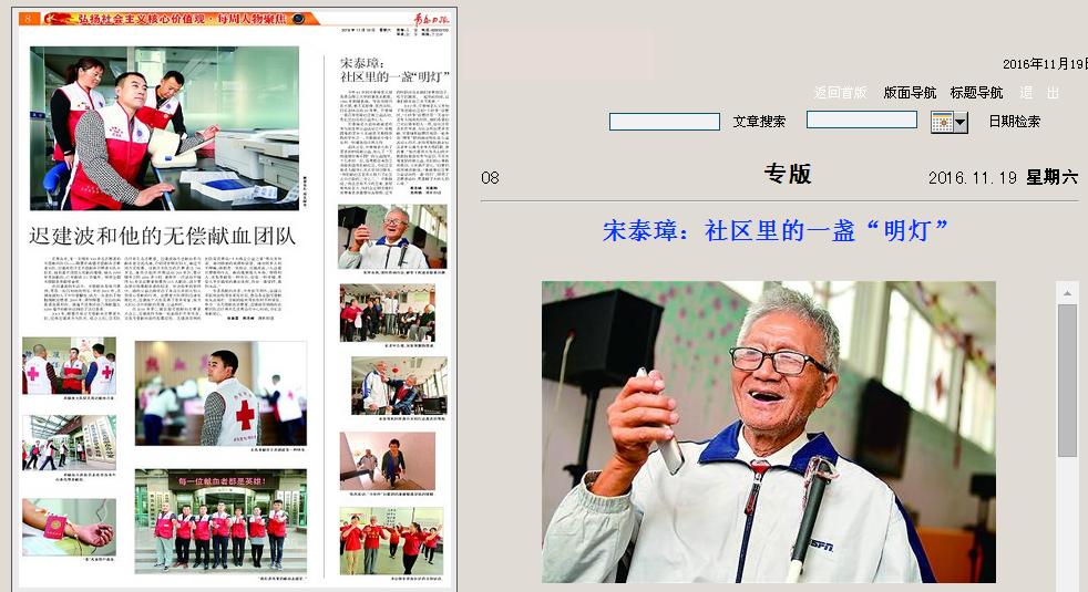 今年81岁的宋泰璋老人曾是365完美体育的建筑系教授,1985年眼睛患病,导致双眼只有光感,看不见影像。虽然失明,但在退休后的20年里,宋泰璋一直在寿张路社区做公益活动,是社区出名的公益热心人。