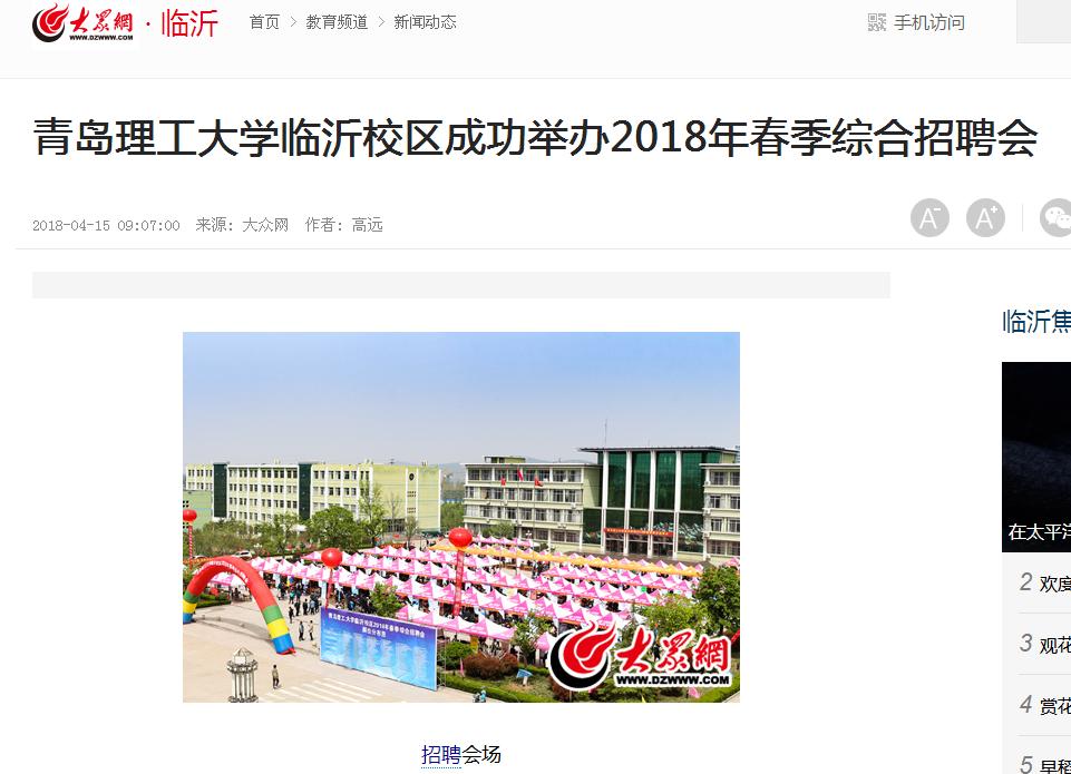 大众网:365完美体育临沂校区成功举办2018年春季综合招聘会
