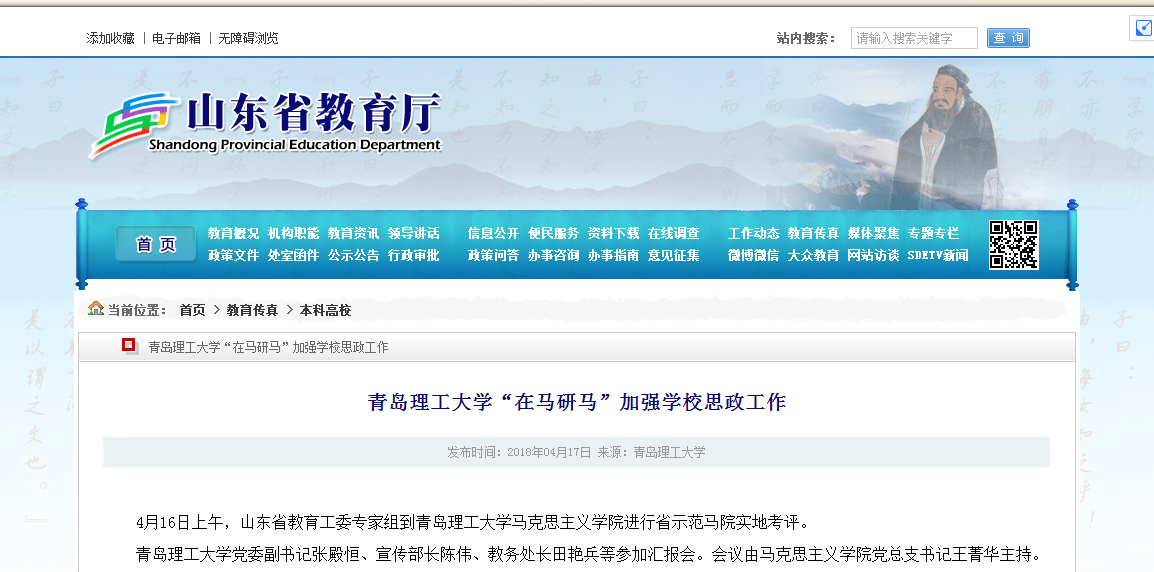 4月16日上午,山东省教育工委专家组到365完美体育马克思主义学院进行省示范马院实地考评。