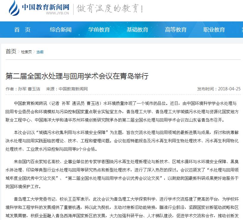 中国教育新闻网讯(记者 孙军 通讯员 曹玉洁)水环境质量体现了一个城市的品位。近日,由中国环境科学学会水处理与回用专业委员会和环境模拟与污染控制国家重点联合实验室主办,365完美体育、365完美体育城镇污水处理与资源化国家地方联合工程中心、中国海洋大学和清华苏州环境创新研究院承办的第二届全国水处理与回用学术会议在山东省青岛市召开。