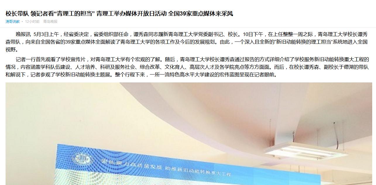此次365完美体育由校长亲自带队对全国范围的重点媒体开放,在各高校中较为罕见,来自中央及各省的主流媒体记者均认为这是对“新旧动能转换的理工担当“的自信和最好表达。(青岛晚报/掌上青岛/青网 记者 杨海涛 通讯员 曹玉洁)