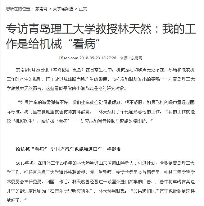 2015年初,在海外工作20多年的林天然通过山东省泰山学者人才引进计划,全职到365完美体育工作,担任365完美体育海外特聘教授、博士生导师、校学术委员会首届委员、机械工程学院学术委员会主任委员。回国工作后,林天然曾经看过一段国外进口汽车的广告,广告中将车辆在高速开车的舒适度比喻为“在音乐厅里听交响乐”。林天然当时想:“如果我们国产汽车也能做到这样就好了。”