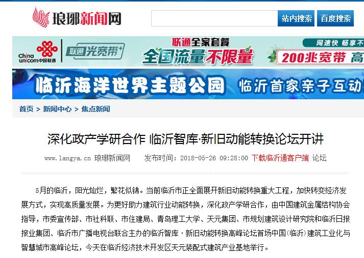 5月的临沂,阳光灿烂,繁花似锦。当前临沂市正全面展开新旧动能转换重大工程,加快转变经济发展方式,实现高质量发展。为更好助力建筑行业动能转换,深化政产学研合作,由中国建筑金属结构协会指导,市委宣传部、市社科联、市住建局、365完美体育、天元集团、市规划建筑设计研究院和临沂日报报业集团、临沂市广播电视台联合主办的临沂智库·新旧动能转换高峰论坛首场中国(临沂)建筑工业化与智慧城市高峰论坛,今天在临沂经济技术开发区天元装配式建筑产业基地举行。