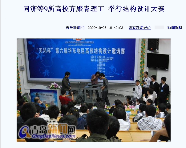 据悉,下一届比赛明年将在南京工业大学举行,所有的模型将在地震台上接受加载试验。(青岛新闻网记者 孙璐璐)