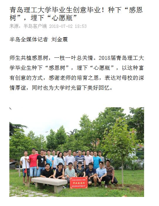 “心系理工 植梦未来”毕业生植树活动是该校2018届毕业生文明离校教育系列活动之一,得到了广大毕业生的积极响应。学校领导、老师与毕业生共同种下感恩树,为广大毕业生在校园内留下永恒记忆点,留下一份对美好理工生活的纪念。同时,毕业生将自己心愿和祝福写在一张张信笺上,装进心愿瓶,将其密封后埋在感恩树下,相约十年后再回母校开启心愿瓶。机械149班王妍妍表示,“不论我们身在何方,我们对母校、对老师的感恩之情和同学们之间的友情,都会像今天我们一起种下的感恩树一样,时间越久,枝叶越茂”。