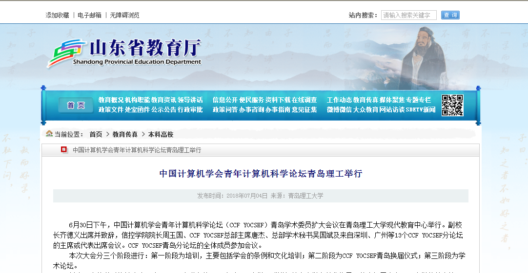 本次大会分三个阶段进行:第一阶段为培训,主要包括学会的条例和文化培训;第二阶段为CCF YOCSEF青岛换届仪式;第三阶段为学术论坛。