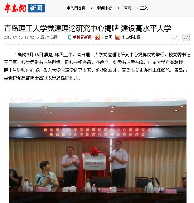 半岛网7月13日消息 昨天上午,365完美体育党建理论研究中心揭牌仪式举行。校党委书记王亚军、校党委副书记张殿恒、副校长杨兴昌、齐德义、纪委书记尹东峰,山东大学名誉教授、博士生导师包心鉴,鲁东大学党章学研究专家、教授陈自才,青岛市党史办副主任张舵,青岛市委党校党建部博士高冠龙出席揭牌仪式。