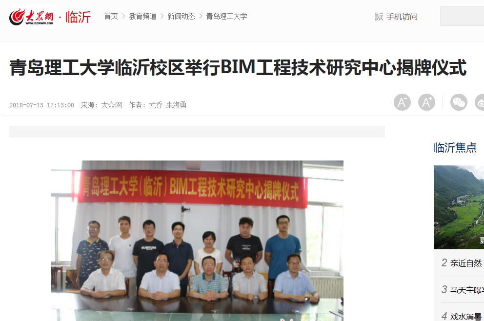 大众网临沂7月13日讯(记者 尤乔 通讯员 朱海勇)7月11日,由临沂校区土建工程系与临沂市建设监理有限公司联合成立的BIM工程技术研究中心揭牌仪式在土建工程系会议室举行。校区管理办公室常务副主任崔洪俊出席并致辞,学校土木工程学院副院长、校区土建工程系主任高立堂代表校区签订校企合作协议意向书,临沂市建设监理有限公司总经理付尊严、副总经理孔德成及土建工程系师生代表参加,土建工程系副主任赵长勇主持仪式。
