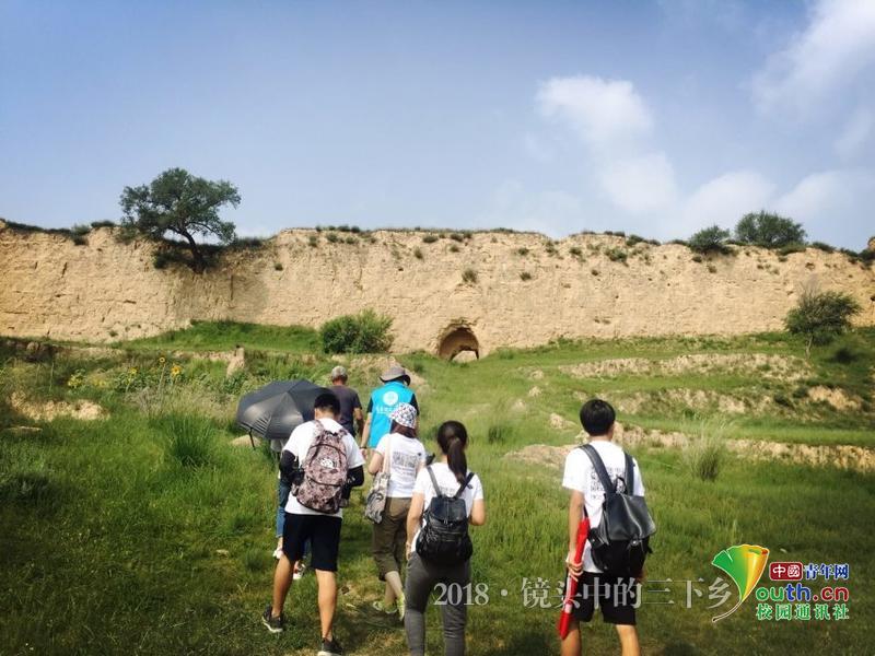 团队成员们在高家堡乡山岔村丁有财村支书的带领下,初步调研了山岔堡遗址,并考察相关旅游资源。团队成员正愉快地与丁书记交流经验。中国青年网通讯员 梁嘉慧 摄