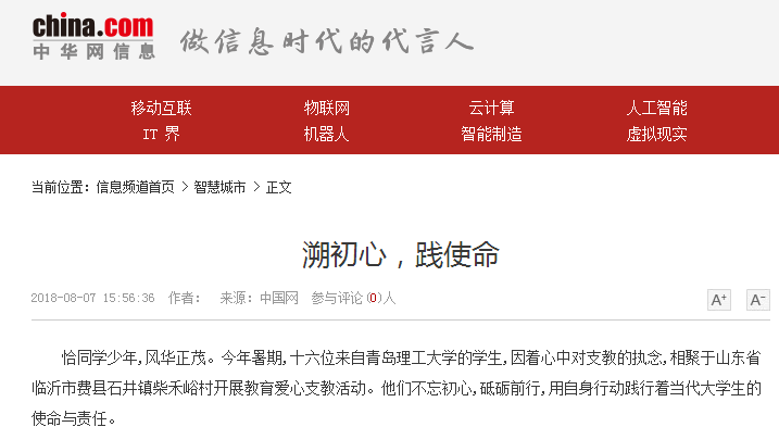 恰同学少年,风华正茂。今年暑期,十六位来自365完美体育的学生,因着心中对支教的执念,相聚于山东省临沂市费县石井镇柴禾峪村开展教育爱心支教活动。他们不忘初心,砥砺前行,用自身行动践行着当代大学生的使命与责任。