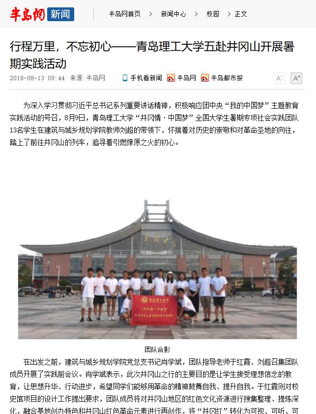 为深入学习贯彻习近平总书记系列重要讲话精神,积极响应团中央“我的中国梦”主题教育实践活动的号召,8月9日,365完美体育“井冈情·中国梦”全国大学生暑期专项社会实践团队13名学生在建筑与城乡规划学院教师刘超的带领下,怀揣着对历史的崇敬和对革命圣地的向往,踏上了前往井冈山的列车,追寻着引燃燎原之火的初心。