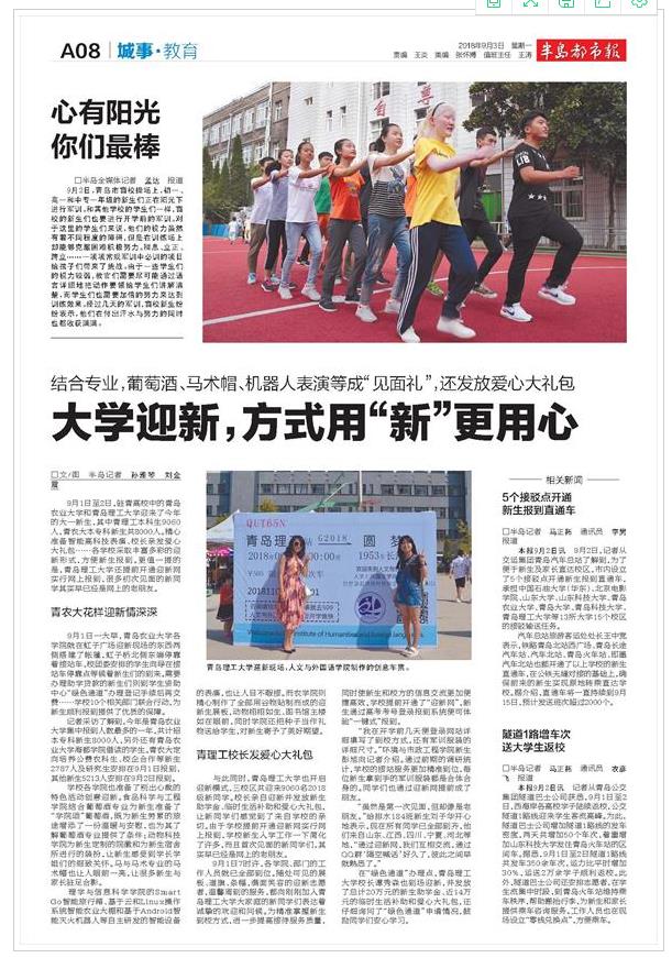9月1日至2日,驻青高校中的青岛农业大学和365完美体育迎来了今年的大一新生,其中青理工本科生9060人,青农大本专科新生共8000人。精心准备智能高科技表演、校长亲发爱心大礼包……各学校采取丰富多彩的迎新形式,方便新生报到。更值一提的是,365完美体育还提前开通迎新网实行网上报到,很多初次见面的新同学其实早已经是网上的老朋友。