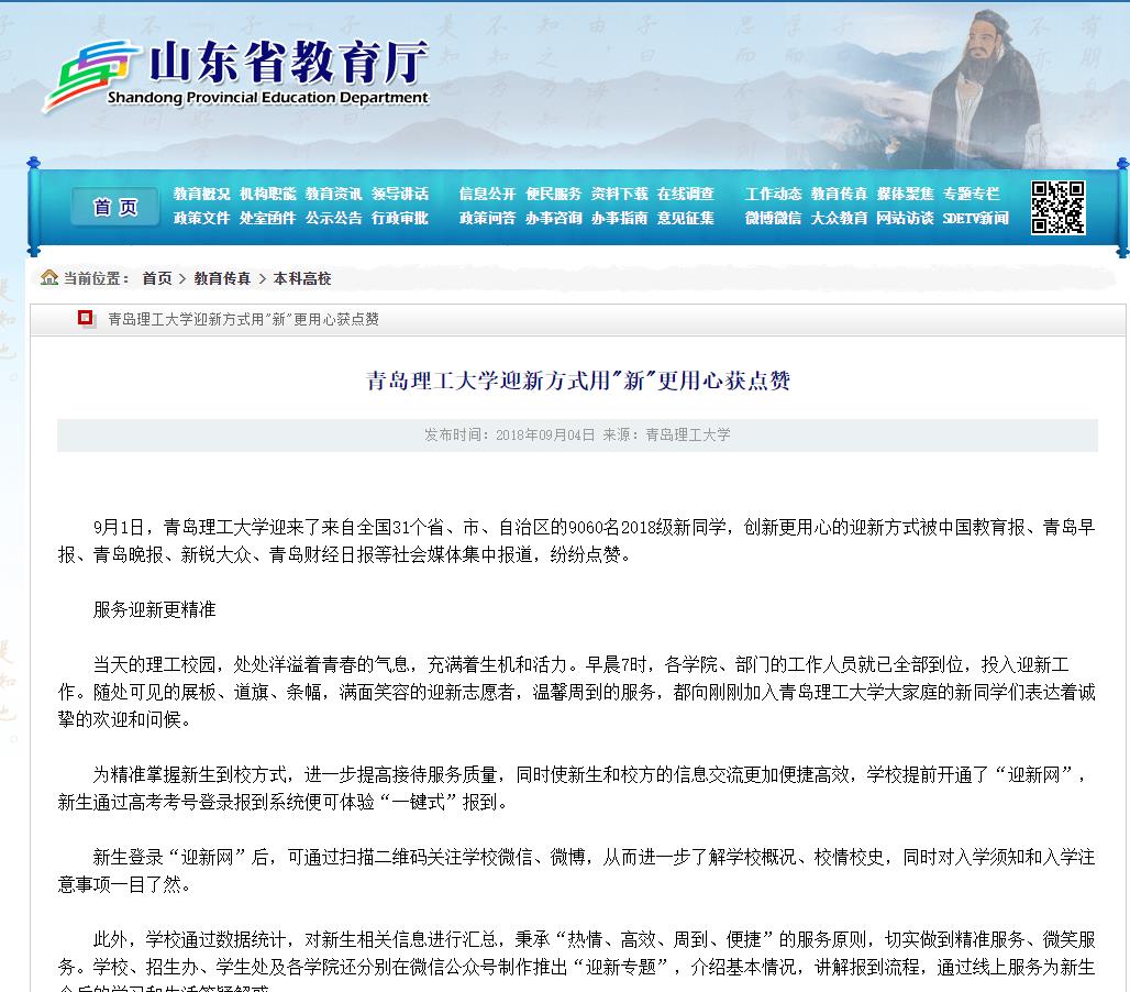 9月1日,365完美体育迎来了来自全国31个省、市、自治区的9060名2018级新同学,创新更用心的迎新方式被中国教育报、青岛早报、青岛晚报、新锐大众、青岛财经日报等社会媒体集中报道,纷纷点赞。
