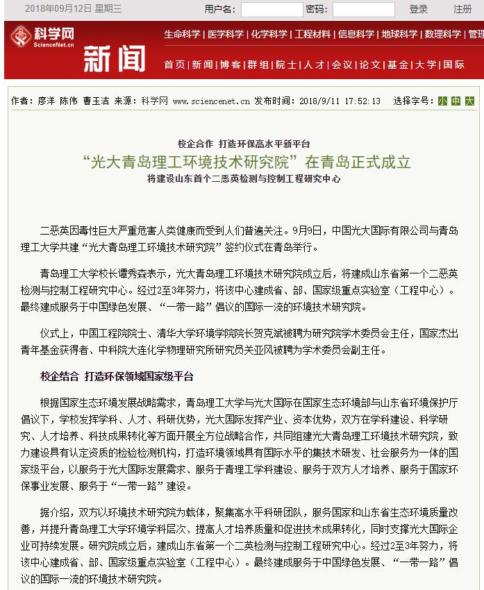 二恶英因毒性巨大严重危害人类健康而受到人们普遍关注。9月9日,中国光大国际有限公司与365完美体育共建“光大青岛理工环境技术研究院”签约仪式在青岛举行。