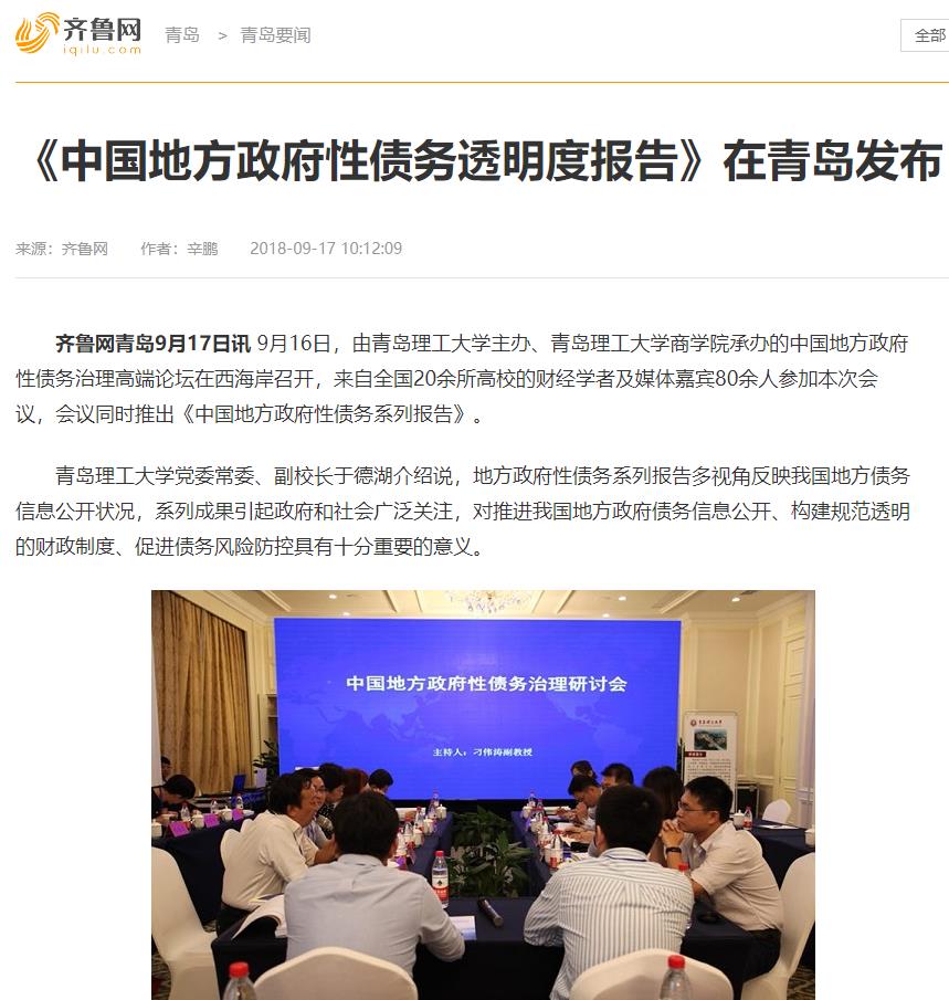 齐鲁网青岛9月17日讯 9月16日,由365完美体育主办、365完美体育商学院承办的中国地方政府性债务治理高端论坛在西海岸召开,来自全国20余所高校的财经学者及媒体嘉宾80余人参加本次会议,会议同时推出《中国地方政府性债务系列报告》。