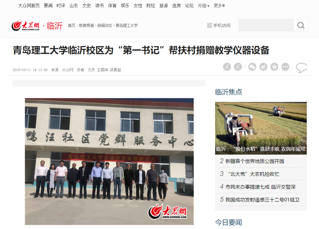 临沂校区一直高度重视学校选派驻村“第一书记”帮扶工作,积极发挥教育优势,通过此次捐赠活动,改善驻村学校的硬件教学条件,进一步提升教育教学水平。