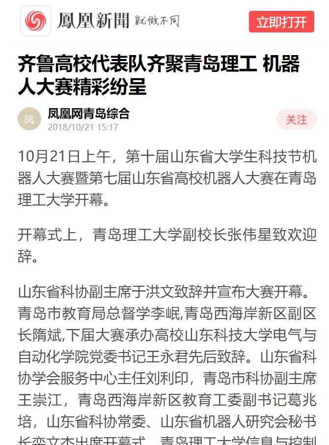 王永君表示,机器人大赛提供了大学生接触机器人前沿知识和实践技能创新的平台,产生了良好的社会效应。山东科技大学将全力好第八届机器人大赛的准备筹办工作,以优质的服务为全省高校师生提供良好条件,保证大赛顺利举办。