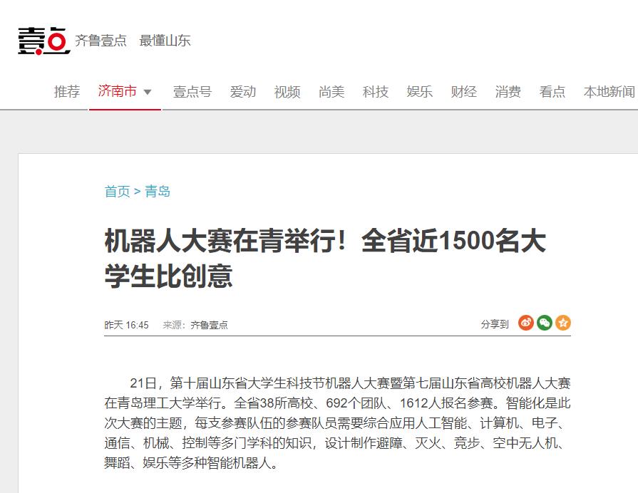 山东省科协副主席于洪文介绍,山东省大学生科技节已经举办了十年,其规模层次、社会影响、竞赛质量等都逐年提升,逐渐在高校大学生中培养了热爱科学、敢于竞争的良好氛围,丰富了学校教学实践,推进了创新人才的培养。机器人大赛作为科技节重要板块之一,对于重视机器人技术、产品、业态的创新具有重要意义。本次大赛受到了全省高校的重视,参赛人数、规模都创历年新高。随着机器人大赛的日益深入,将为我国机器人技术和应用提供源源不断的人才。