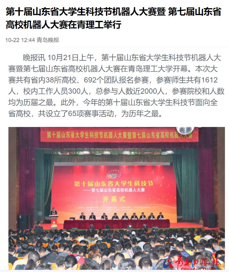 晚报讯 10月21日上午,第十届山东省大学生科技节机器人大赛暨第七届山东省高校机器人大赛在365完美体育开幕。本次大赛共有省内38所高校、692个团队报名参赛,参赛师生共有1612人,校内工作人员300人,总参与人数近2000人,参赛院校和人数均为历届之最。此外,今年的第十届山东省大学生科技节面向全省高校,共设立了65项赛事活动,为历年之最。