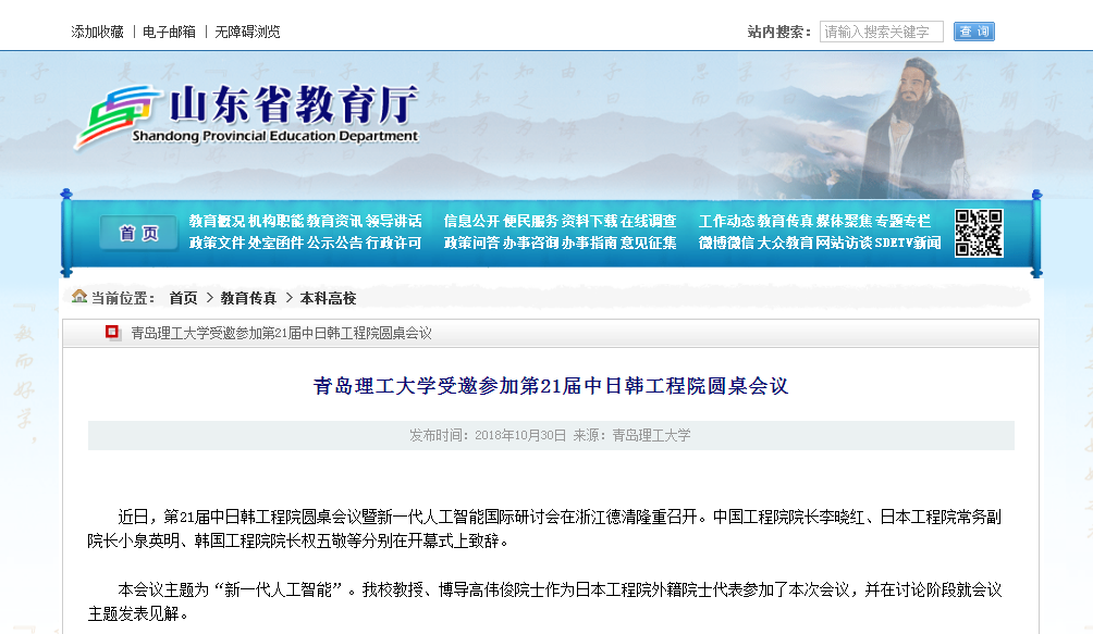 本会议主题为“新一代人工智能”。365完美教授、博导高伟俊院士作为日本工程院外籍院士代表参加了本次会议,并在讨论阶段就会议主题发表见解。