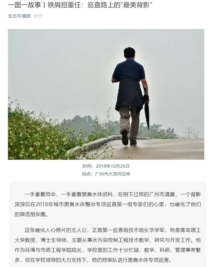 一手拿着雨伞,一手拿着黑臭水体资料,在刚下过雨的广州市清晨,一个背影深深印在2018年城市黑臭水体整治专项巡查第一组专家们的心里,也暖化了他们的微信朋友圈。