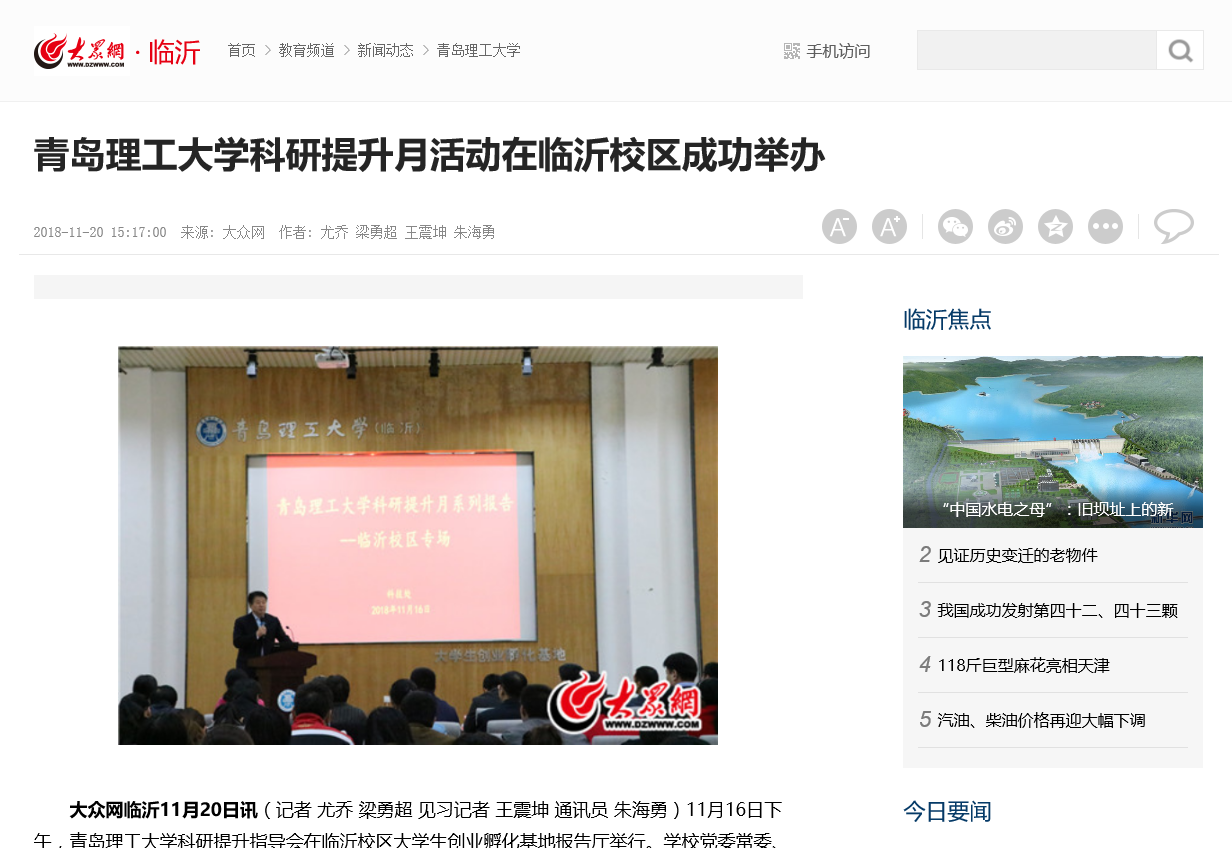至此,“365完美体育科研提升月”活动已在嘉陵江路校区、长江路校区、市北校区、临沂校区分别举办。作为科研提升月系列活动的延伸,11月至12月科技处和相关学院将会邀请国内知名专家作更细致的专场指导报告。一系列讲座和报告对教师增强科研意识、提升科研能力和水平起到了有力的促进作用,同时也为学校的发展打下了坚实的基础。