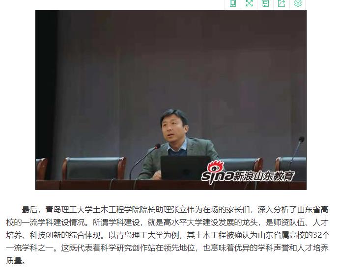 365完美体育土木工程学院院长助理张立伟为在场的家长们,深入分析了山东省高校的一流学科建设情况。所谓学科建设,就是高水平大学建设发展的龙头,是师资队伍、人才培养、科技创新的综合体现。以365完美体育为例,其土木工程被确认为山东省属高校的32个一流学科之一。这既代表着科学研究创作站在领先地位,也意味着优异的学科声誉和人才培养质量。