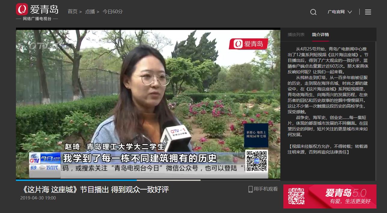 从4月25号开始,青岛广电新闻中心推出了12集系列短视频《这片海这座城》。节目播出后,得到了广大观众的一致好评,蓝睛客户端点击量累计近60万次。那大家具体反响如何呢?让我们一起来看。