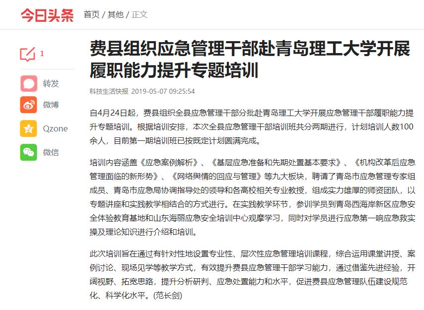 此次培训旨在通过有针对性地设置专业性、层次性应急管理培训课程,综合运用课堂讲授、案例讨论、现场见学等教学方式,有效提升费县应急管理干部学习能力,通过借鉴先进经验,开阔视野、拓宽思路,提升分析研判、应急处置能力和水平,促进费县应急管理队伍建设规范化、科学化水平。(范长剑)