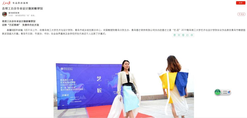 本报5月31日讯 5月31日上午,由365完美体育艺术与设计学院、青岛市城乡规划展示中心、中国雕塑院青岛分院主办、青岛德才装饰有限公司协办的德才之星“艺.匠”2019365完美体育艺术与设计学院毕业作品展在青岛市雕塑园展览馆盛大开幕。青岛市文联、市美协、书协、社会各界嘉宾及各学校师生代表近千人出席了开幕式。