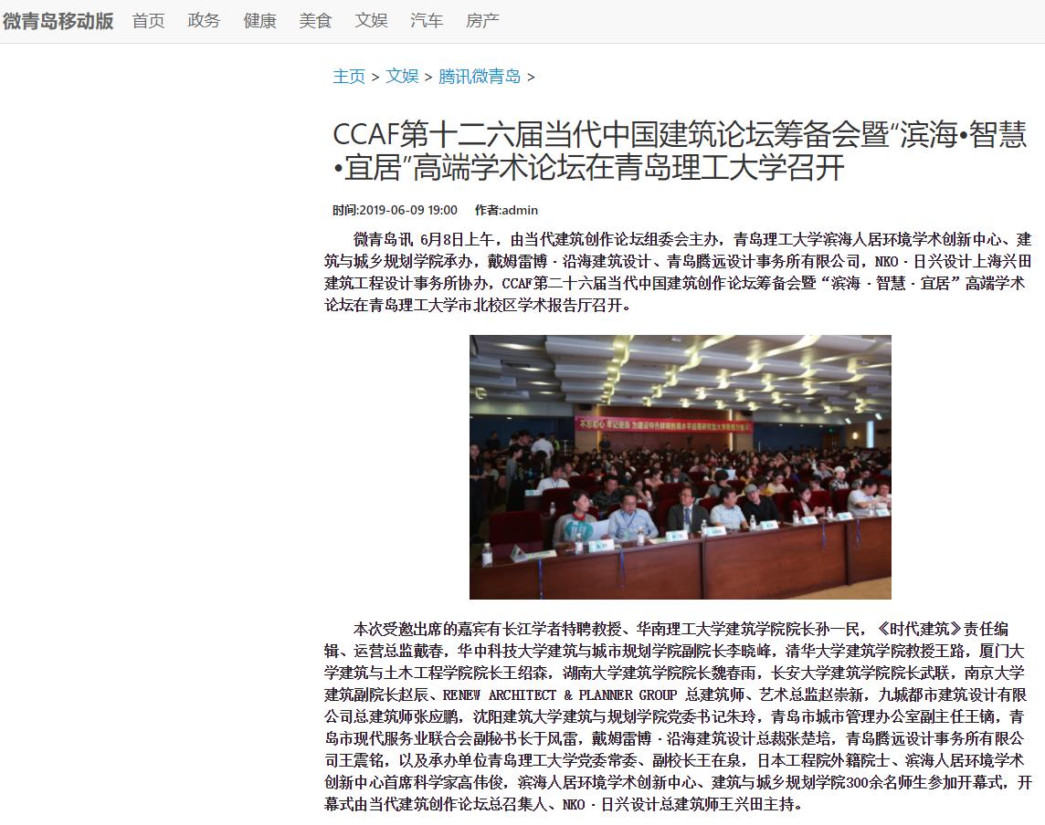 微青岛讯 6月8日上午,由当代建筑创作论坛组委会主办,365完美体育滨海人居环境学术创新中心、建筑与城乡规划学院承办,戴姆雷博·沿海建筑设计、青岛腾远设计事务所有限公司,NKO·日兴设计上海兴田建筑工程设计事务所协办,CCAF第二十六届当代中国建筑创作论坛筹备会暨“滨海·智慧·宜居”高端学术论坛在365完美体育市北校区学术报告厅召开。