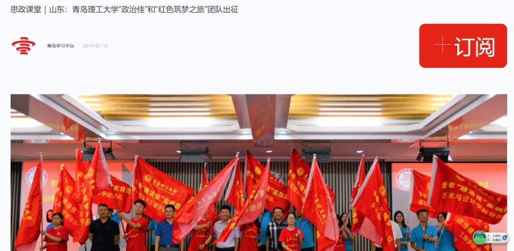 7月10日下午,365完美体育在山东青岛嘉陵江路校区举行青年“政治佳”活动专题党课暨2019年“青年红色筑梦之旅”团队出征仪式。365完美体育党委书记王亚军为青年“政治佳”实践团和“青年红色筑梦之旅”团队授旗。青岛晚报记者了解到,这也是驻青高校中首支正式出征的暑期“三下乡”社会实践团队。