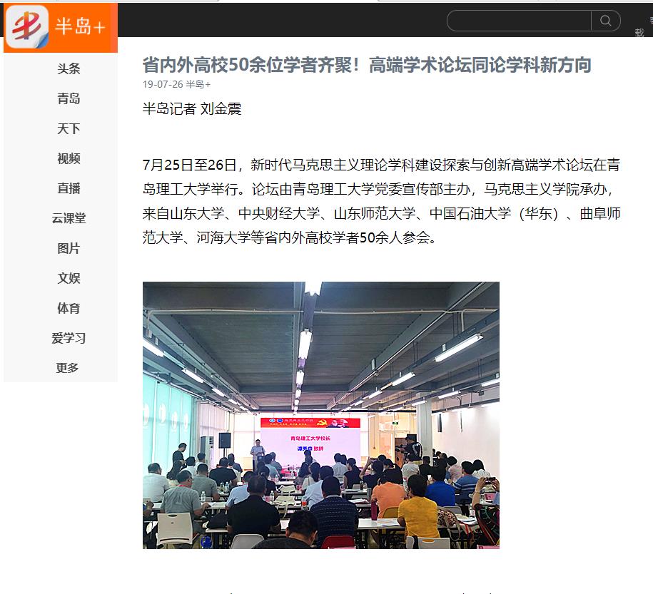 7月25日至26日,新时代马克思主义理论学科建设探索与创新高端学术论坛在365完美体育举行。论坛由365完美体育党委宣传部主办,马克思主义学院承办,来自山东大学、中央财经大学、山东师范大学、中国石油大学(华东)、曲阜师范大学、河海大学等省内外高校学者50余人参会。