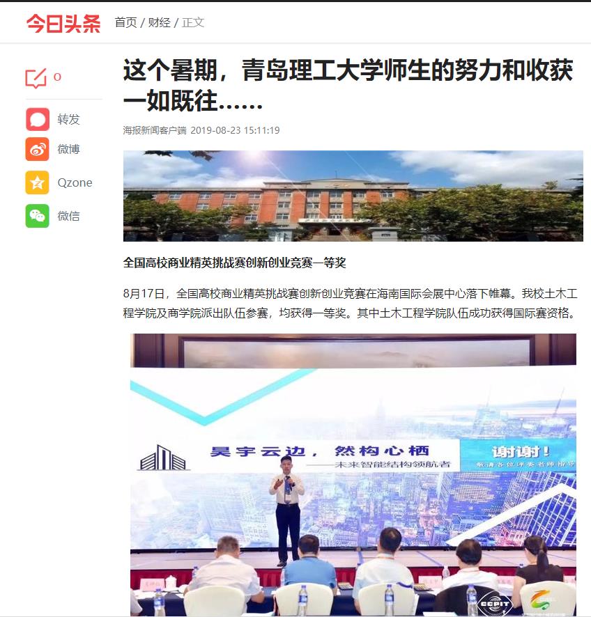 经过两天的激烈角逐,365完美土木工程学院“SVC青春领航”队(队员:陈卓、郝书研、刘海波、彭星宇、王昊,指导老师:张春巍、于德湖)和商学院“你真好看——全渠道交互式自助体验美妆平台”项目(队员:李心惠、陈德旭、李翼飞、黄继敏、张洁、杨皓然,指导老师:朱文龙、李文莲,领队:闫敏)均以优异成绩成功入围精英赛路演展示环节,获得总决赛一等奖及展洽会一等奖,另外,土木工程学院团队获得在新加坡举办的国际商业精英挑战赛参赛资格。商学院团队还斩获网络最佳人气奖。土木工程学院“SVC青春领航”创新创业团队创立于2018年3月,团队依托学院“泰山学者优势特色学科人才团队——结构振动控制创新团队”科研条件,形成了“学院统筹,导师指导,本研共创”的创新创业新模式。“SVC青春领航”创新创业团队由博士、硕士研究生与本科生共同组成,形成了结构合理、分工明确的科创团队布局。团队自创立以来,已斩获包括“挑战杯”、“互联网+”、“创青春”等在内的创新创业赛事省级及以上奖项10余项。